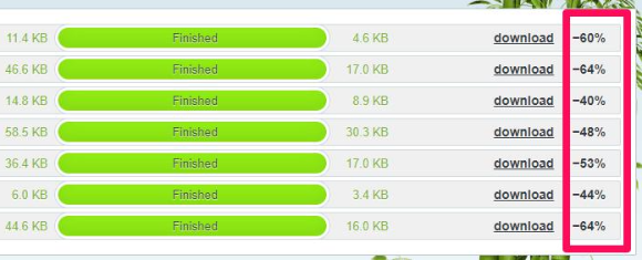 2. 이미지 압축률을 확인하고 왼쪽의 download를 클릭하면 압축된 이미지 개별 저장됩니다.