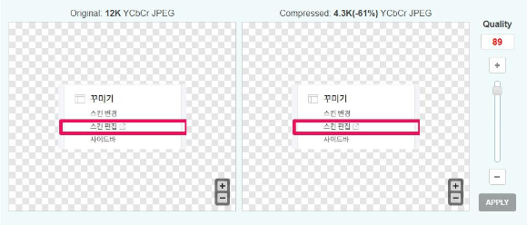 3. 이미지 용량 사이즈를 조절하고 싶다면 아래의 에디터를 이용해서 조절해서 저장합니다.